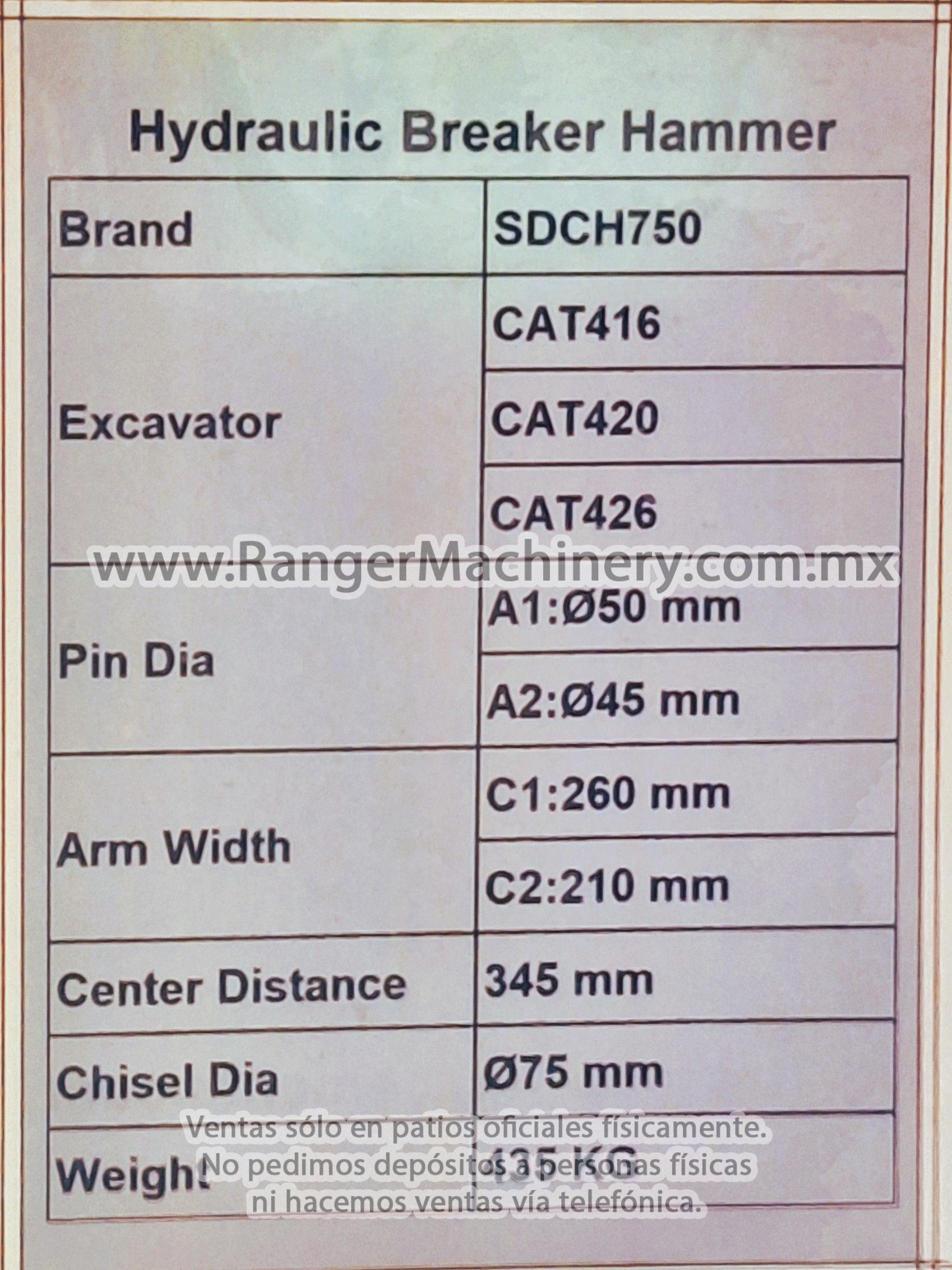 - Martillo Hidraulico Para Retroexcavadora Caterpillar Modelo: 416, 420 y 426